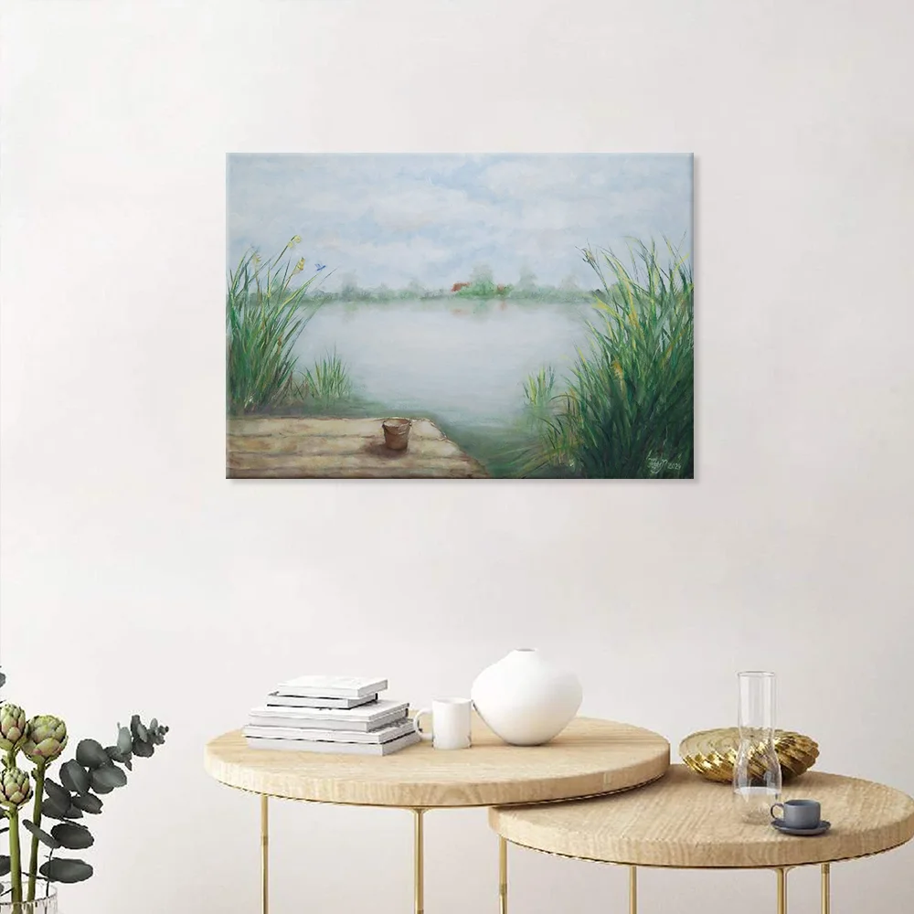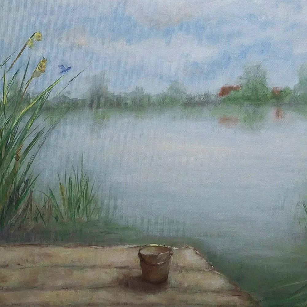 În peisajul meu am evocat momente minunate de relaxare și pace, pe care le-am trăit în vară, pe pontonul unui lac.